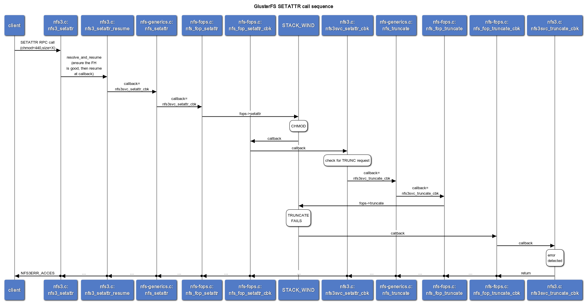 | Summary: | NFS SETATTR call with a truncate and chmod 440 fails | ||